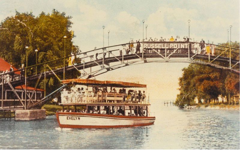 Long before modern roads and summer cottages, the Indian Lake area began as a group of small lakes and wetlands shaped by glaciers. Over the 19th century the body of water was enlarged and managed as the Lewistown Reservoir to support canals and local industry; later it evolved into the recreational Indian Lake that drew tourists and entrepreneurs to its shores. That transformation set the stage for Russells Point’s summertime boom.